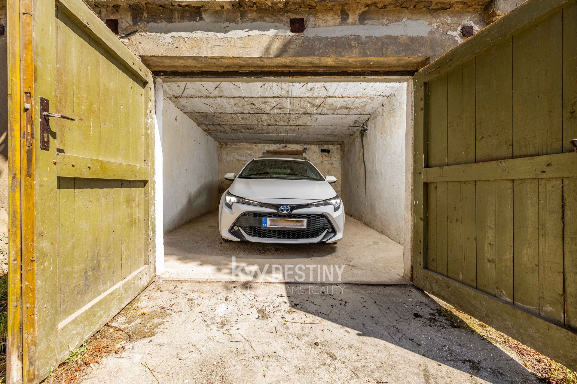 Místo čekání na spuštění inzerce na portálech jsem během focení umístil na garážová vrata jednoduchý banner s kontaktem. Během pár dní se mi ozval zájemce z okolí, kterého zaujala právě tato garáž při procházce.