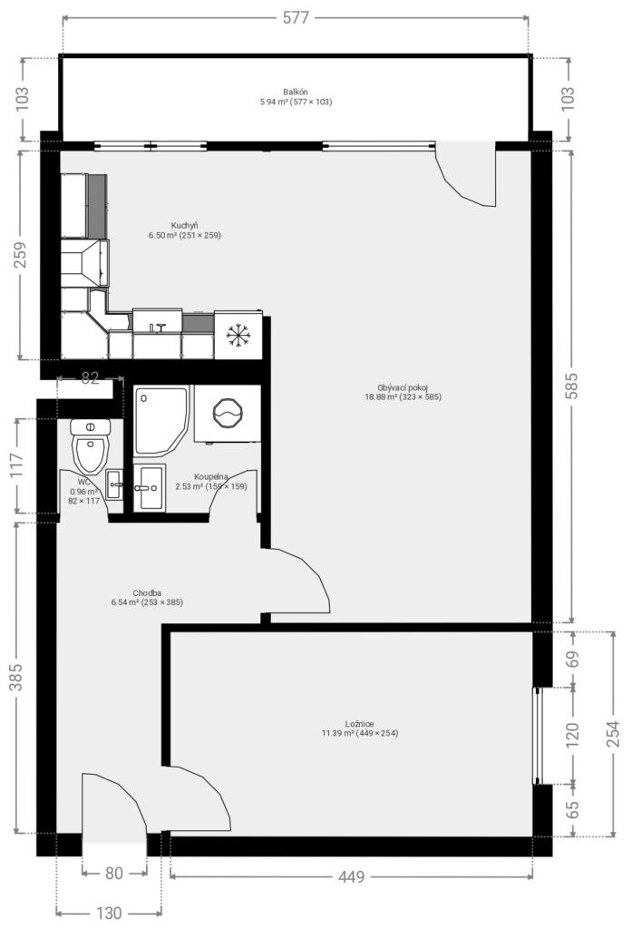 Dispozice 2+kk -