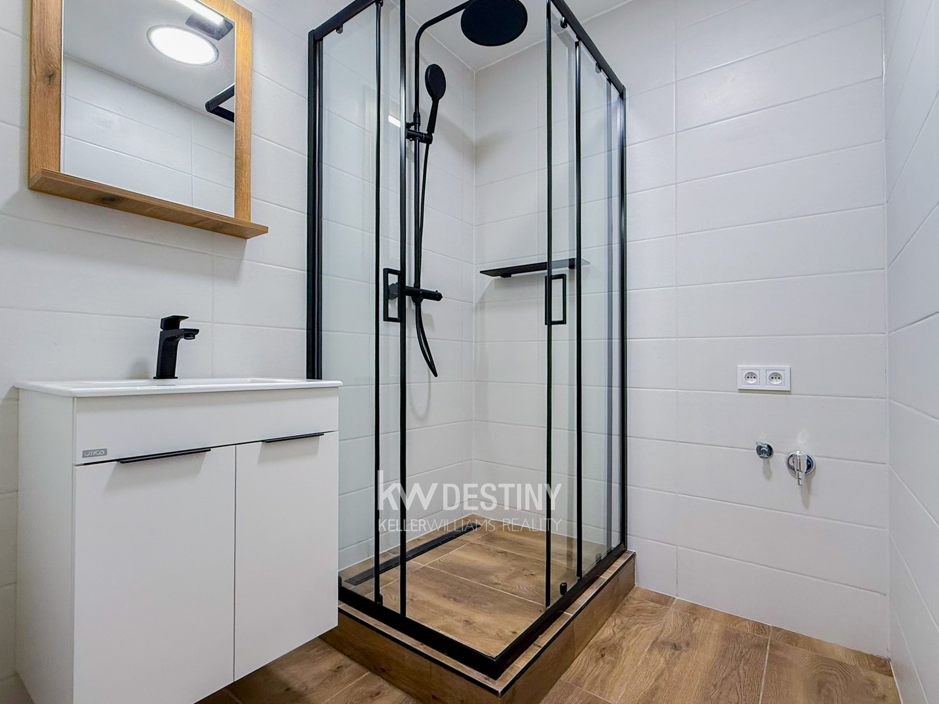 Koupelna i samostatná toaleta prošly kompletní rekonstrukcí a jsou obloženy moderní keramickou dlažbou. V koupelně naleznete designový sprchový kout, který je vybaven sprchovou soupravou s komfortní termostatickou baterií a dešťovou hlavicí. Dále je zde připravena umyvadlová skříňka, osvětlené zrcadlo a nechybí ani přípojka a prostor pro pračku i sušičku. Obě místnosti jsou vybaveny odvětráváním. V celém zbytku bytu je položena kvalitní vinylová podlaha, která sjednocuje interiér.