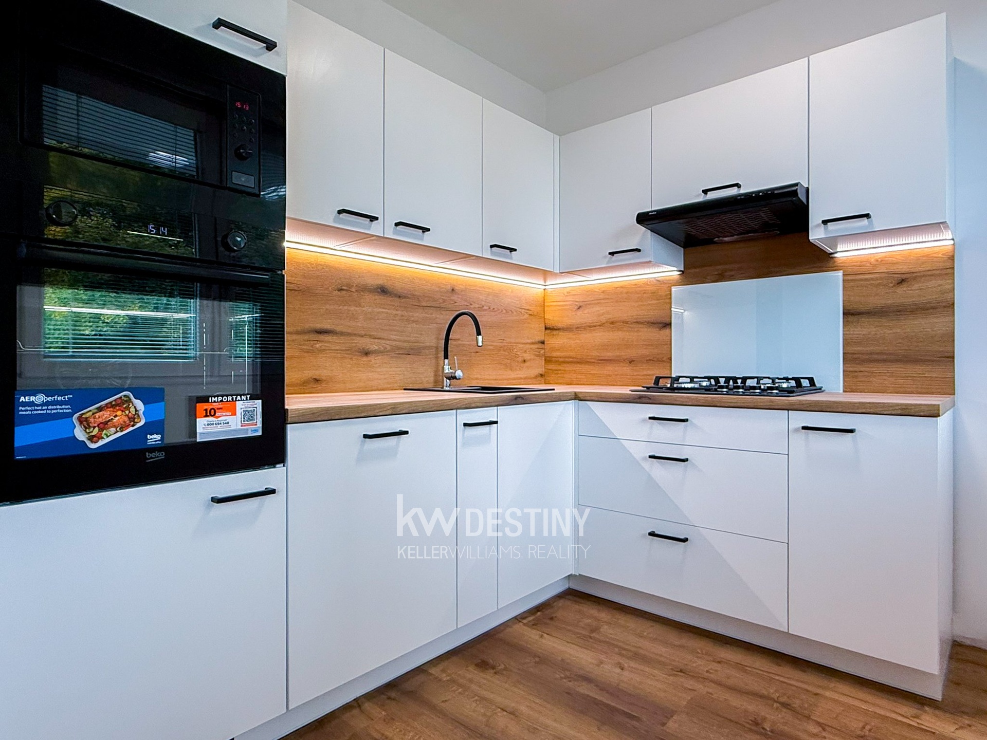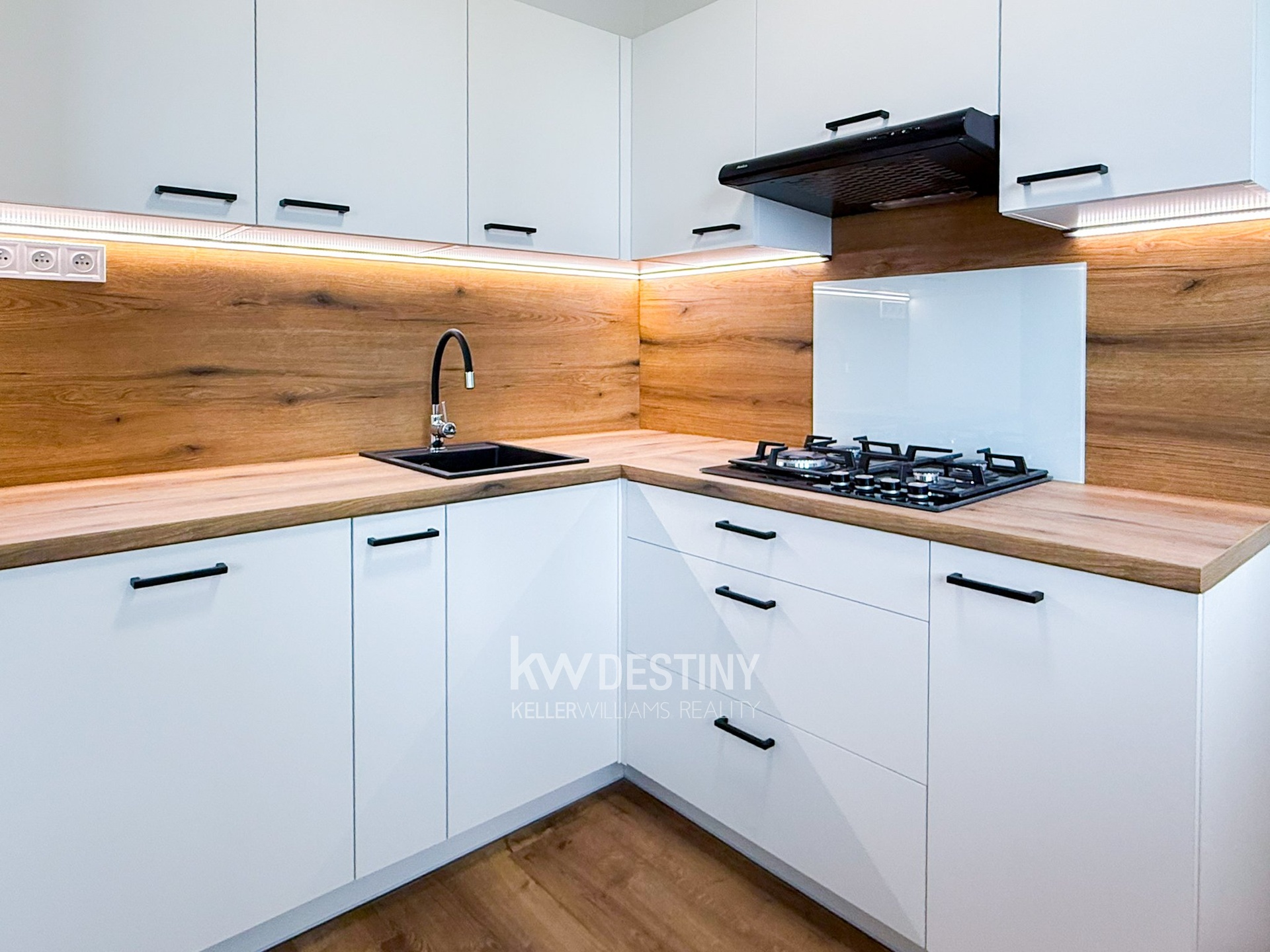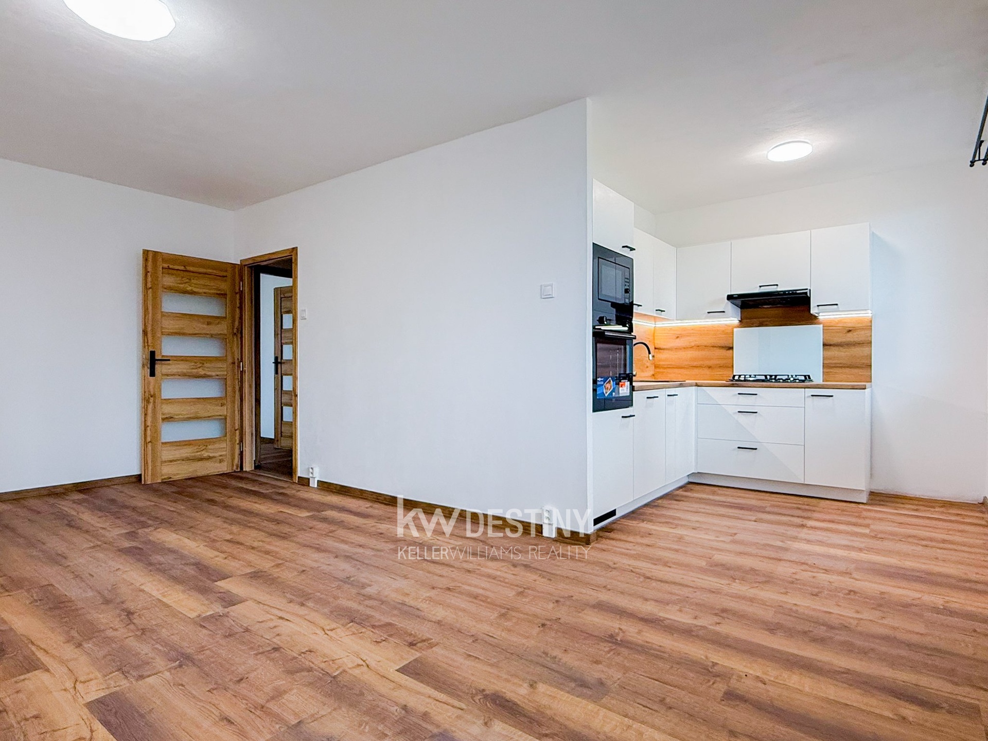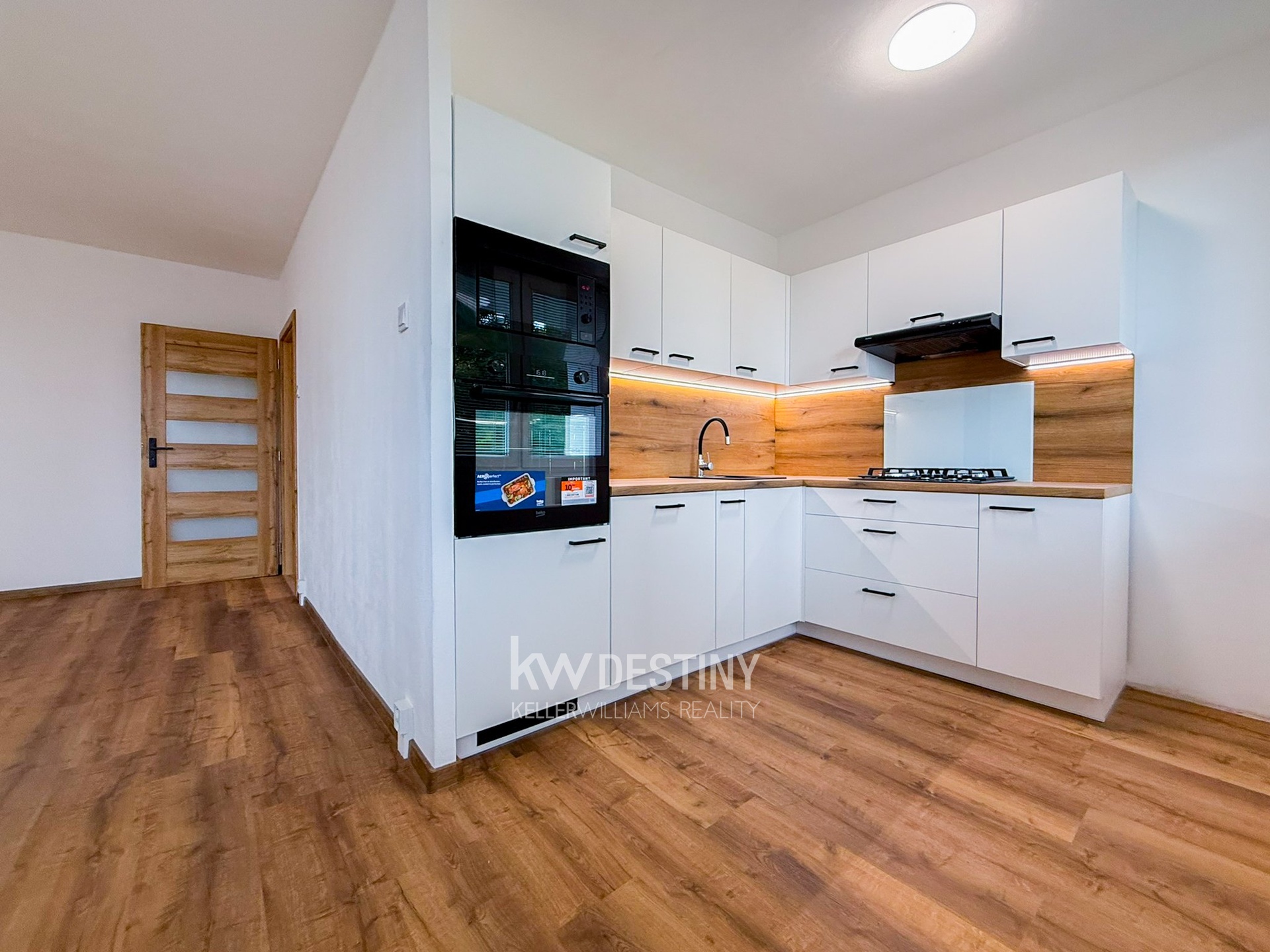Byt je nabízen bez zařízení, ale disponuje zcela novou, na míru vyrobenou kuchyňskou linkou. Ta potěší tlumením dorazů všech dvířek a šuplíků i moderním LED podsvícením po celé své délce. Je vybavena vestavnými spotřebiči (myčka, trouba, mikrovlnná trouba) a také sklokeramickou plynovou varnou deskou a digestoří s odtahem do stoupaček. V případě zájmu je možné využití starší lednice a pračky, kterou má majitel k dispozici.