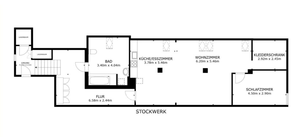 Byt nabízí moderní řešení dispozice 2+kk s důrazem na otevřenost, funkčnost a komfortní úložné prostory. Centrem bytu je prostorný obývací pokoj s kuchyňským koutem a jídelní částí, který plynule navazuje na ostatní části bytu. Ložnice i samostatná šatna jsou přístupné zvlášť – dveře do obou místností se nacházejí vedle sebe, což zajišťuje praktické a logické uspořádání. Součástí bytu jsou navíc dvě komory, ideální například pro uskladnění sezónních věcí.